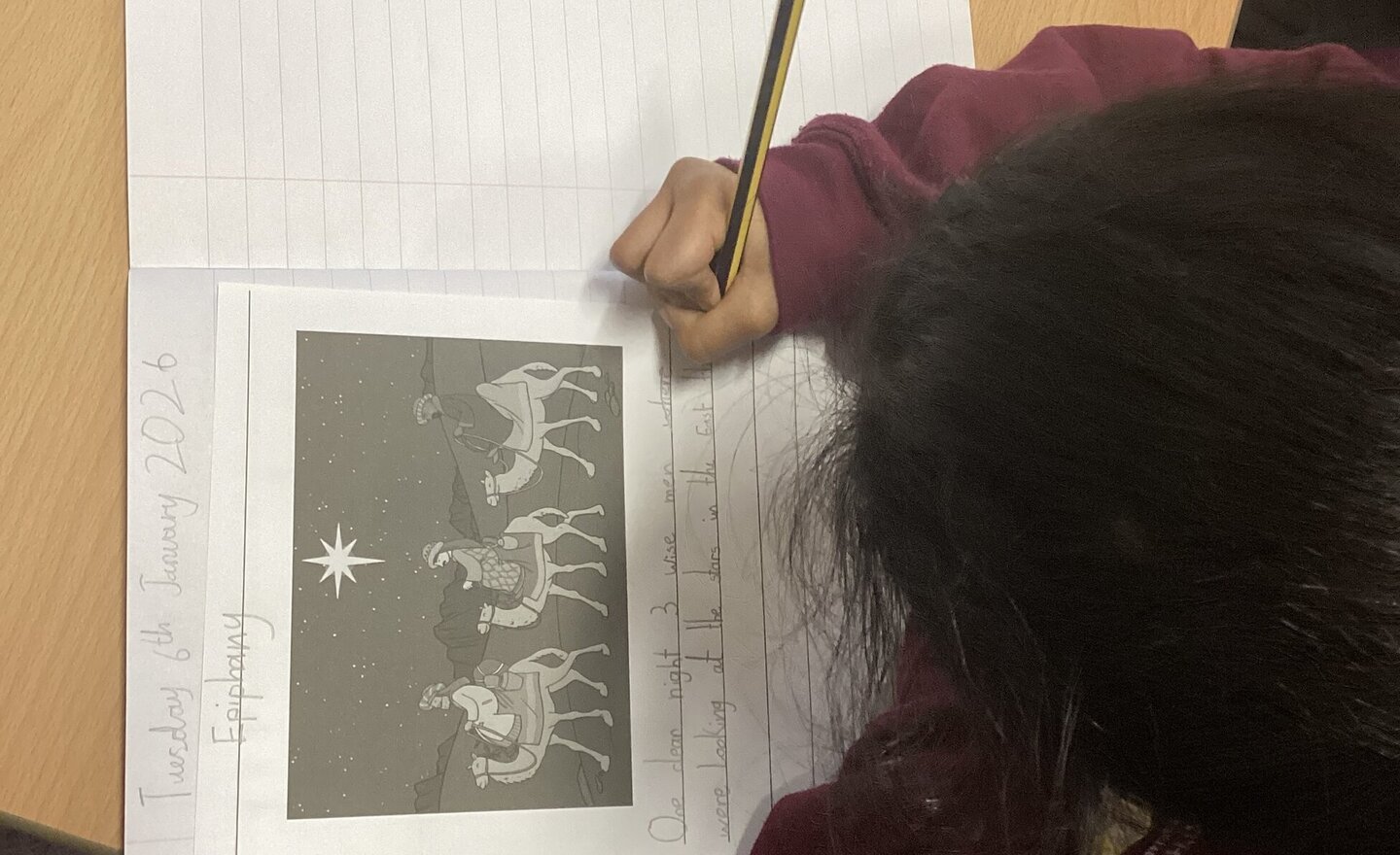 Year 2 have had a reflective morning. They have thought about the feast of the Epiphany and the journey the Three Wise Men went on, to worship the baby Jesus. The children then had the opportunity to write about the special feast day.