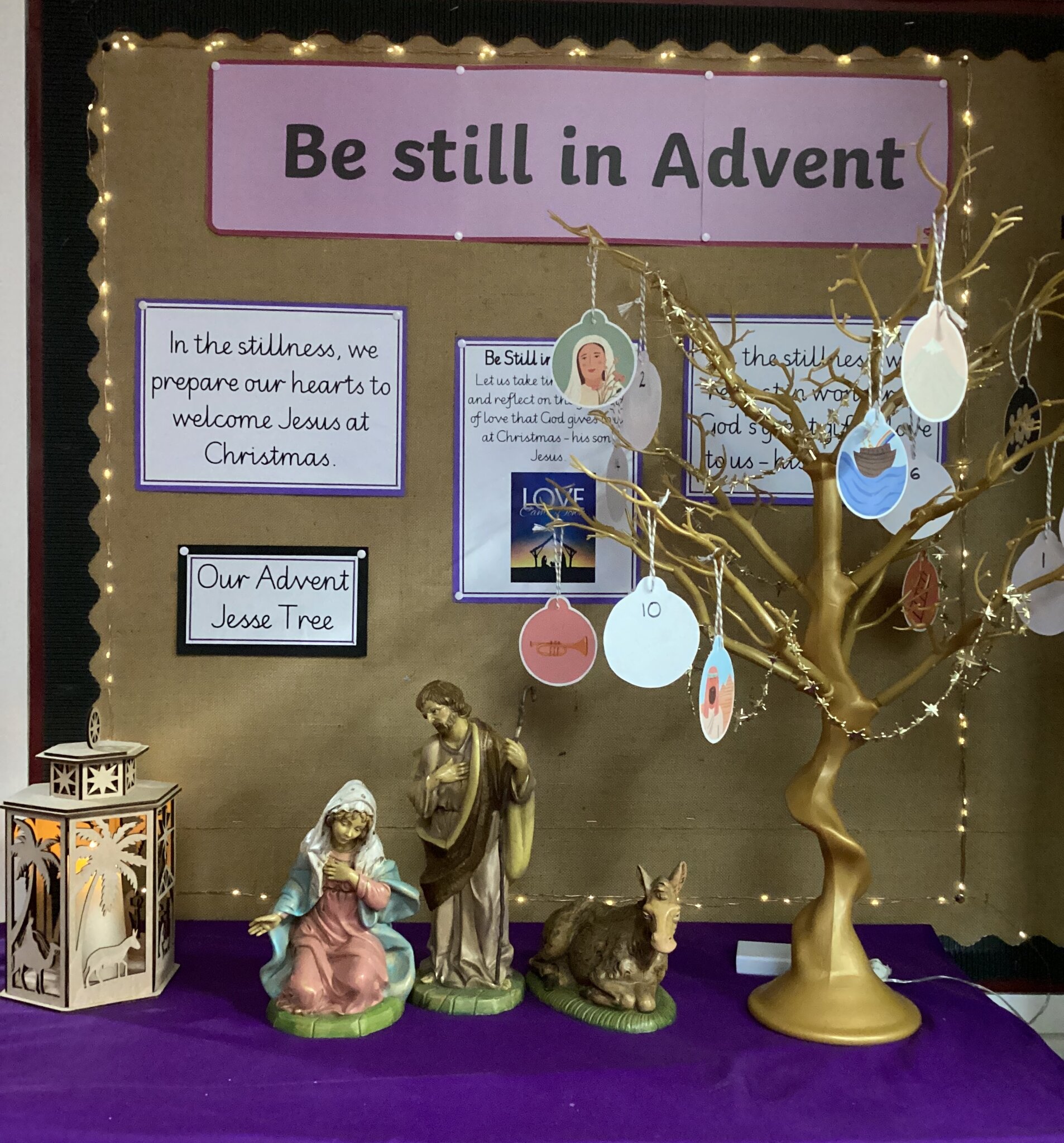 After lunch every day during Advent, children have taken part in a time of silent meditation as part of our 'Be Still during Advent'. We have also used daily reflections on the characters of the Jesse tree to help us to prepare our hearts to celebrate the birth of Jesus, the Son of God, at Christmas.